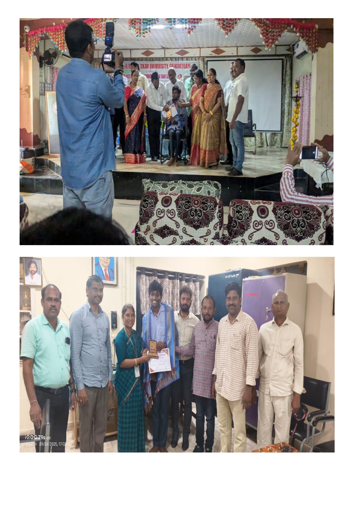 NSS Day was grandly celebrated at Dr. B.R. Ambedkar University on 24th September 2025. Raju, a III B.A. student from our college, received a prize for his excellent performance in the event.