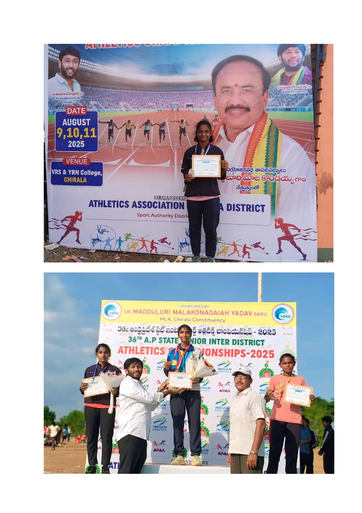 M. Balanjili 2nd Bcom Sate meet Athletics 4*100 Relay race , gold???? 4*400 Relay race , silver ????